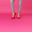 زوج من المضخات الحمراء، له كاحل منتظم وظهر مغلق