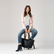 قميص كاجوال بنقشة بولكا بالأبيض والأسود، بياقة عريضة، أزرار فضفاضة، أكمام طويلة عادية، حافة منحنية