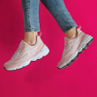 زوج من أحذية المشي الوردية، وتصميم منتظم، وتفاصيل الأربطة