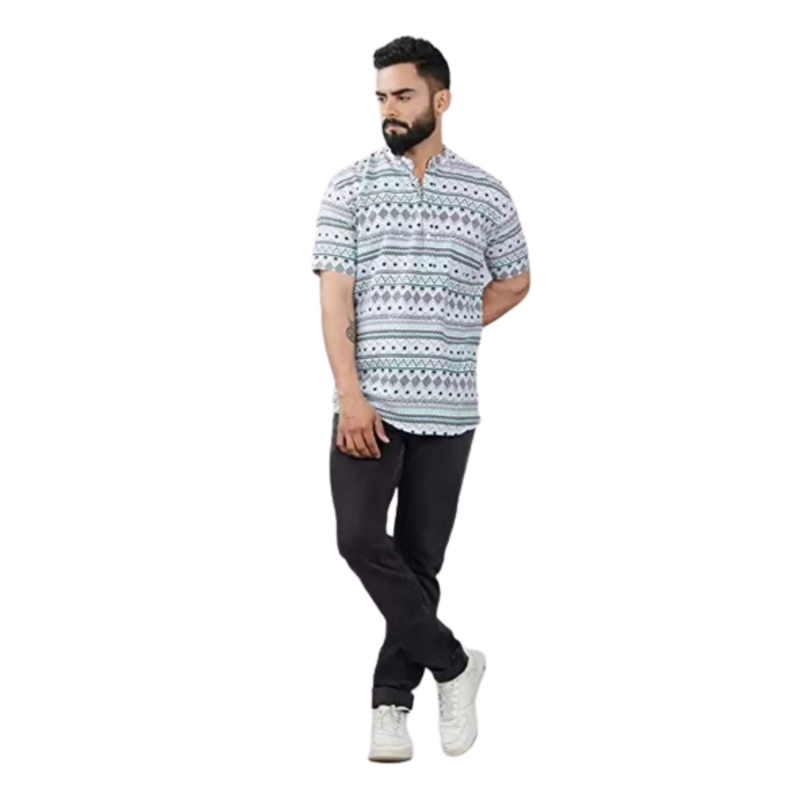 VIYAANSH Mens Animal Printed Cotton Blend Short Kurta
