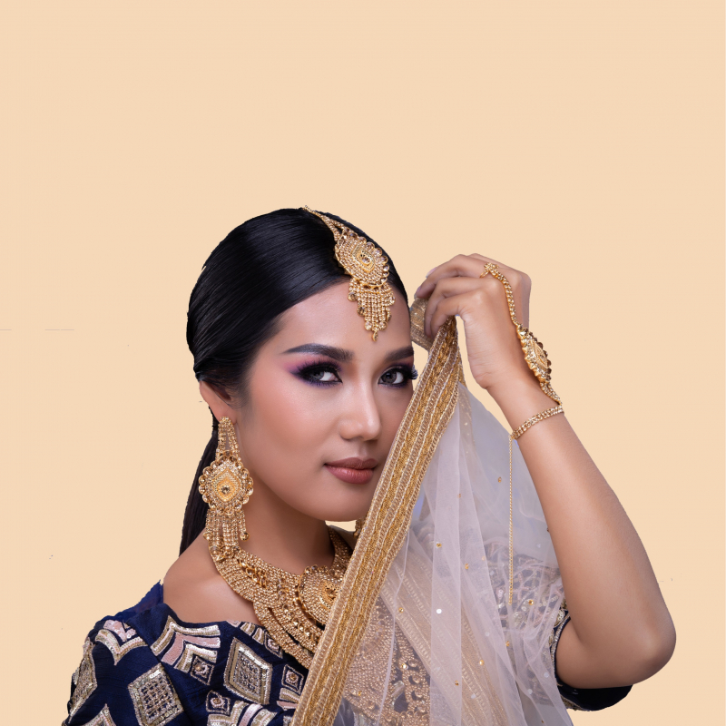 The set is studded with artificial beads and CZ stones, secured with drawstring closure, and earrings are secured with a post and back closure.
