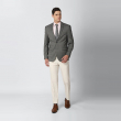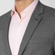 Grey self design slim fit formal blazer, has a notched lapel collar, long sleeves with buttons, single breasted with button closures,2 mock pockets with flaps ,1 pocket on chest and  2 internal pockets, attached lining, double vented back hem.
