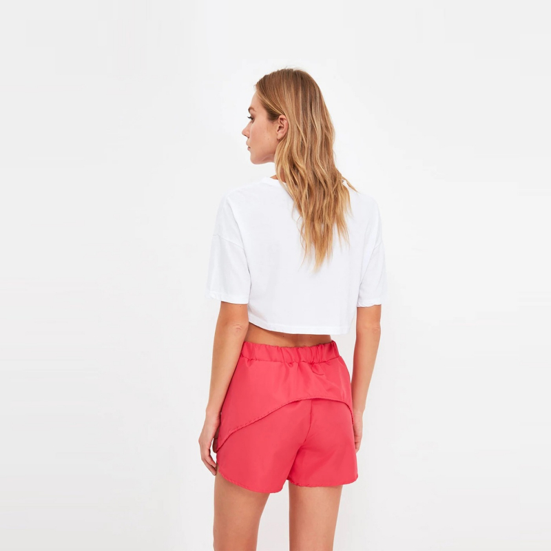 Pink mid-rise regular shorts, has an elasticated waistband.